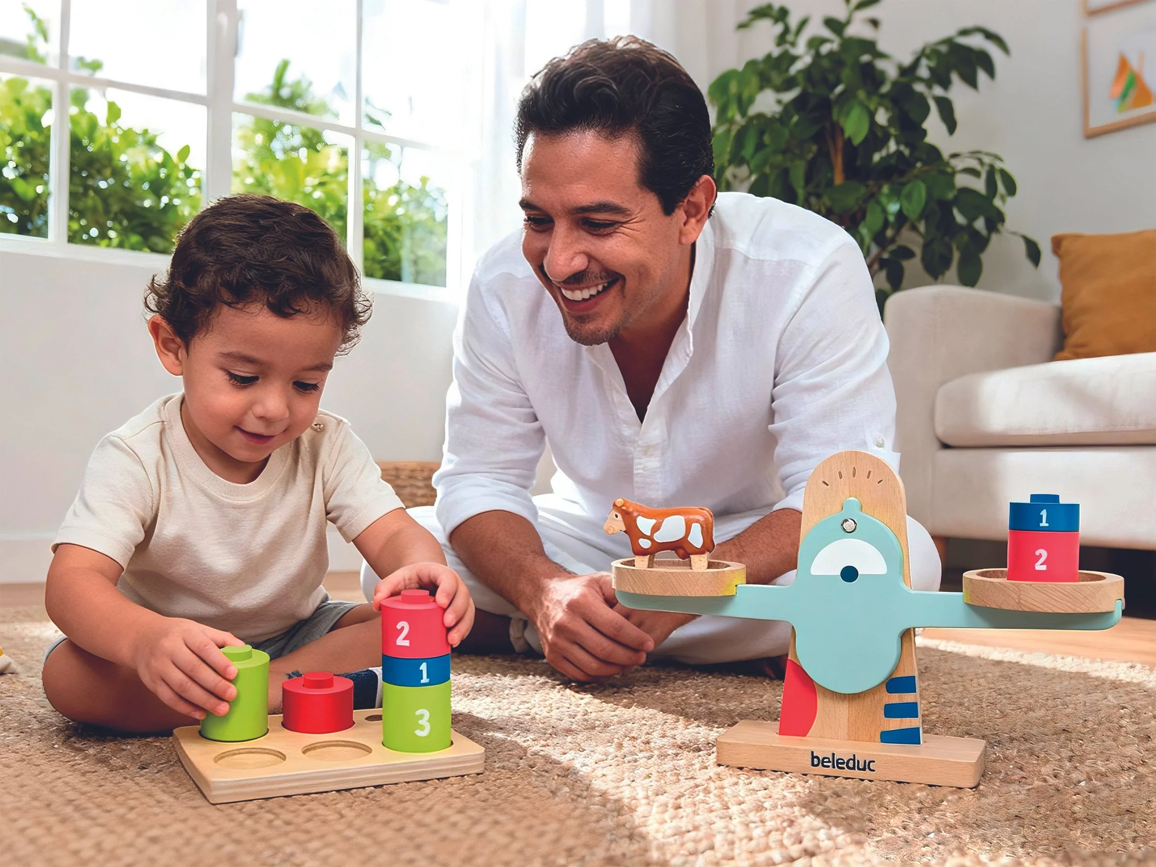 The visual style extends the Beleduc colour palette with softer, modern, and playful tones, combined with simple, toddler-friendly primary shapes, designed with irregular, gently rounded edges.
